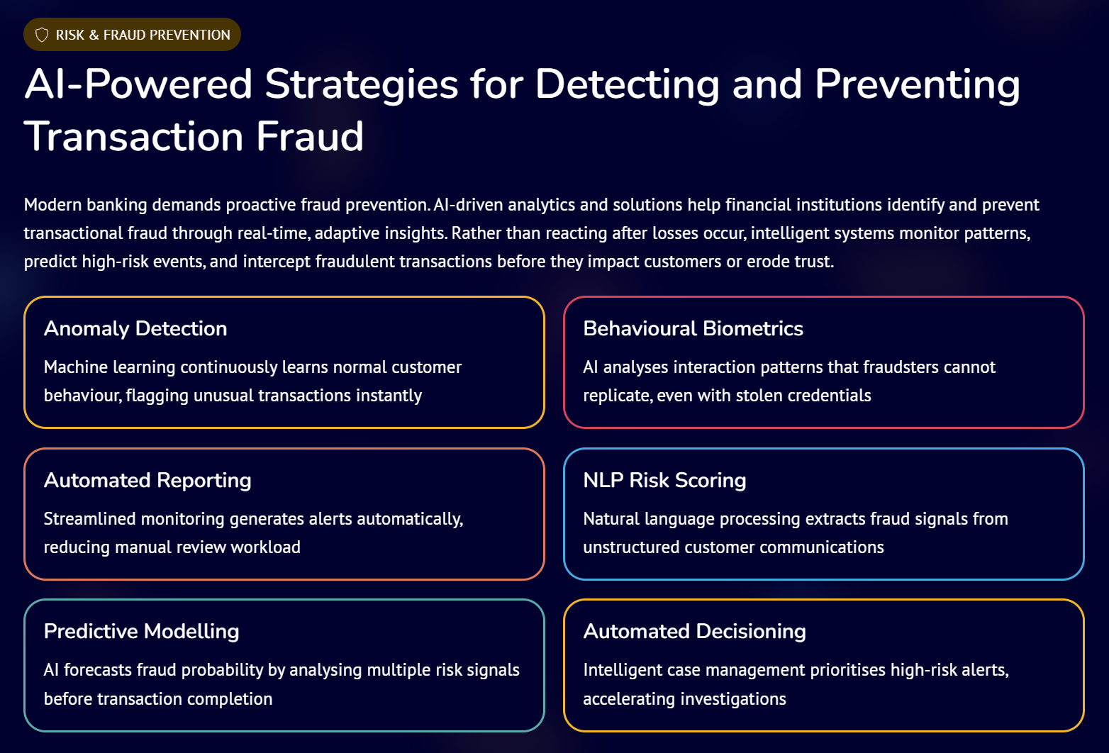 Even areas such as how a user interacts with the interface of their usual payment app, with subtle behavioural cues like typing rhythm, swipe patterns, or navigation flow, can help validate identity even when credentials are compromised. At scale, AI automates fraud monitoring and case prioritisation, allowing teams to focus only on the highest-risk alerts. It can assess fraud risk before a transaction is completed by combining device, network, behavioural, and historical signals into a real-time risk score. This enables banks to block or delay genuinely risky transactions without adding friction for legitimate customers.