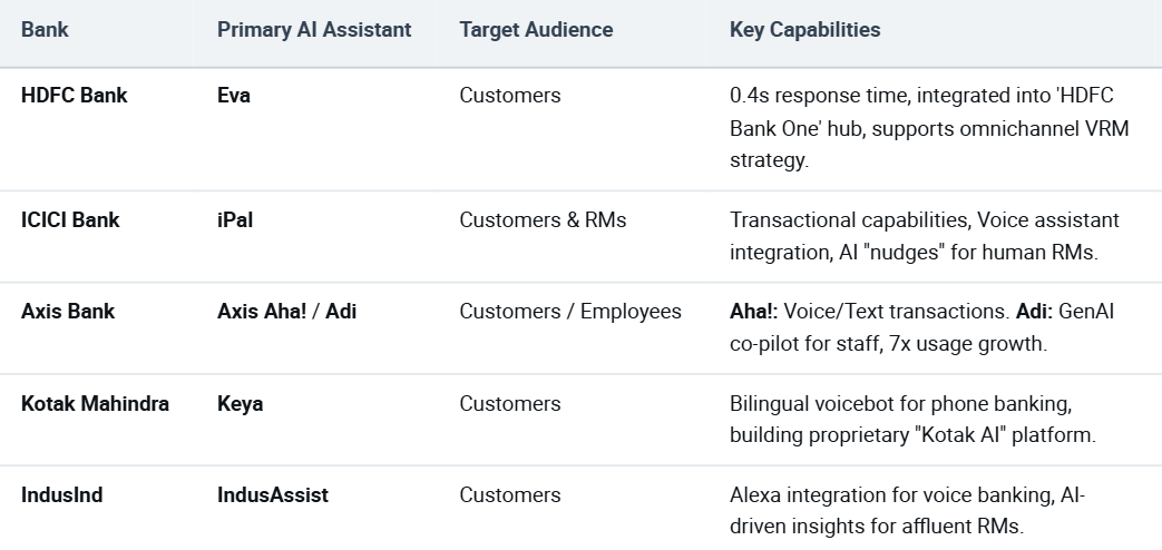 Over time, these chatbots have evolved with the help of GenAI, with leading private sector banks in India being early movers in adopting AI to scale their relationship management capabilities. They have transitioned from simple query-resolution chatbots to sophisticated Virtual Relationship Management (VRM) ecosystems that blend human expertise with AI-driven insights. Here are some details of key capabilities private banks now have in their chat bots with AI: