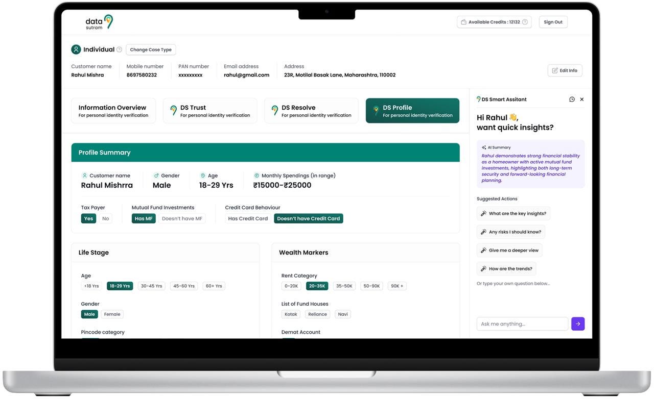 This is where a data intelligence layer like Data Sutram becomes critical. By increasing identity certainty and enriching the lender’s view of customer risk and financial capacity, it helps underwriting systems make sharper decisions earlier in the funnel.