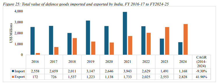 On the import side, while India still remains one of the largest defence importers globally, but the pattern is shifting. Earlier cycles were dominated by large-ticket platform imports such as fighter aircraft, submarines, and artillery systems. Today, imports are increasingly concentrated in critical technologies where domestic capability is still limited. These include aero-engines, high-end radar systems, advanced propulsion, niche electronic warfare systems, and certain semiconductor-intensive subsystems. Government is pushing toward indigenisation through positive indigenisation lists and procurement prioritisation, aimed at gradually reducing reliance on imported platforms. In effect, India is moving from being a pure buyer of finished platforms to a country that increasingly manufactures, integrates, and exports.