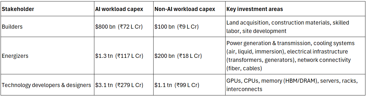 For the $5.2 trillion of expected capex to be spent between 2025 - 2030, there are 3 types of stakeholders where this spending will be allocated:
