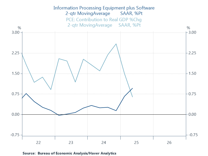 America runs on consumer spending. Personal Consumption Expenditures (PCE) accounts for roughly 70% of its total GDP. Therefore the biggest part of incremental GDP growth in their country every year is generally defined by this PCE/consumer spending trajectory. But the year 2025 has turned out to amongst strangest one - where the contribution to GDP growth by Information Processing Equipment + Software (famously called AI Capex) has added more to the GDP than consumer spending in H1.