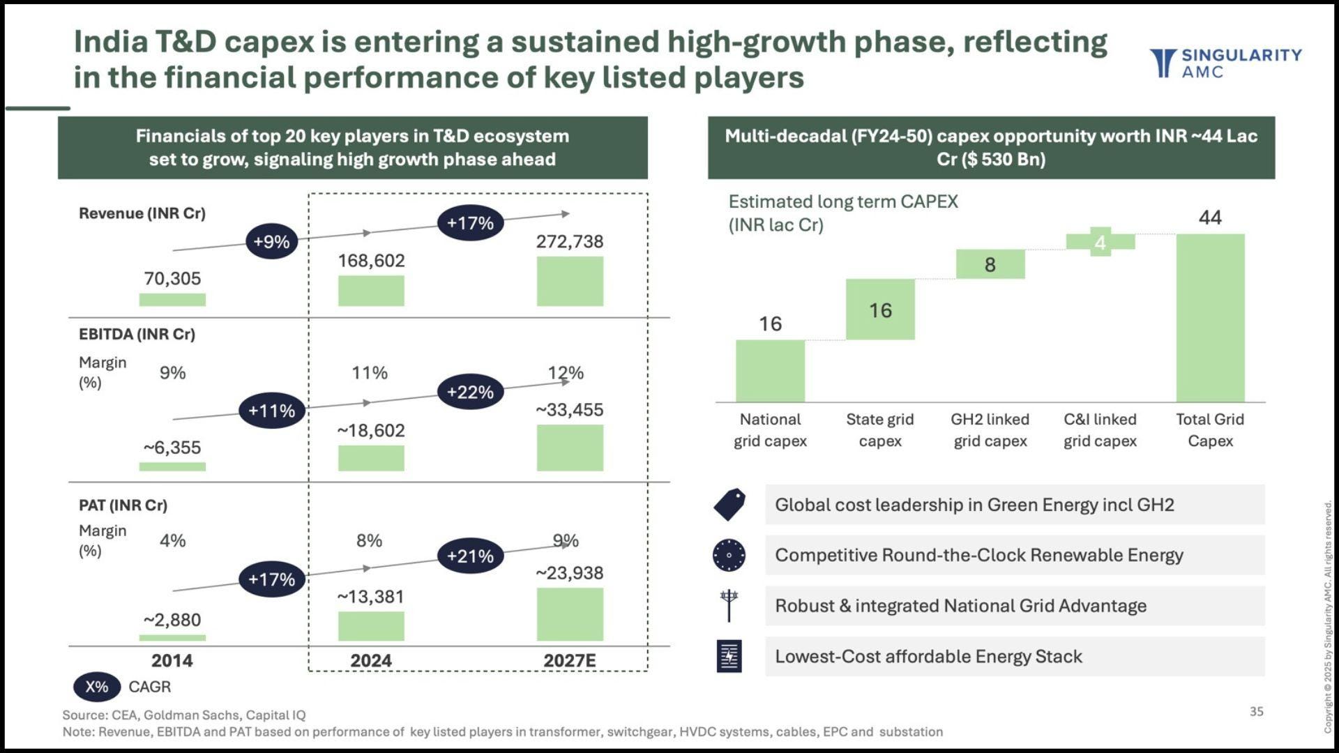 The importance of Transmission & Distribution will only grow as more renewable power is added. Managing intermittency, integrating battery storage and building flexible, smart grids will be critical. Without this backbone, generation potential cannot be fully realized.